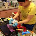 The students felt like kids at a candy store, only the candy was stained tea bags, onion skin and mulberry bark paper, dead flower heads, petals and leaves, small twigs and porcupine quills!