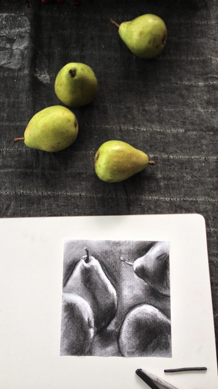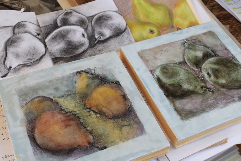 So I’ve taken the pear as my current subject (being March that seems the best option for organic form choices) and taken to daily charcoal drawings and encaustic paintings of them. I have started to share my ideas and teach a few friends my approach; and being a documenter, I am collecting a variety of processes that I hope to compile and share in a book of some sort.