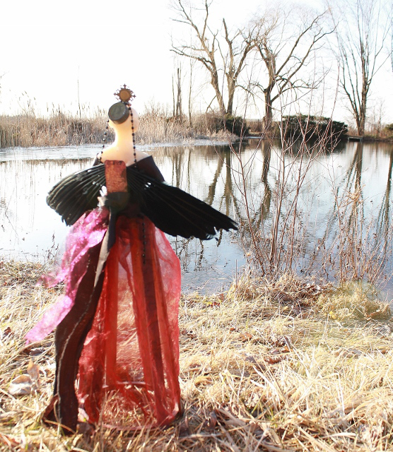 Kirsten had all types of childhood treasures in her stash, and each came out, one by one, to be gathered and woven into her Santos, until her Santos became a living Talis(wo)man. Her Santos was strong and royal, and during her process of being created, appeared sometimes African, sometimes Russian, sometimes masculine, sometimes feminine. In the end, her Santos was a strong Copper Relic of her own beauty and value.